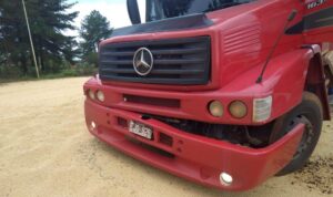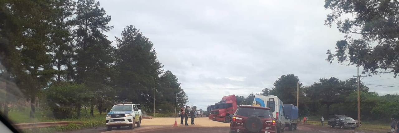 En el lugar volcó un pesado camión que transportaba varias toneladas de Soja y que se dirigía de Sur a Norte, seguramente al Alto Uruguay Misionero. El vehículo, un Mercedes Benz de color Rojo, dominio EJO 826 fue quién volcó su acoplado tipo semi remolque y esparció por varios metros sobre la cinta asfáltica su carga de porotos soja.