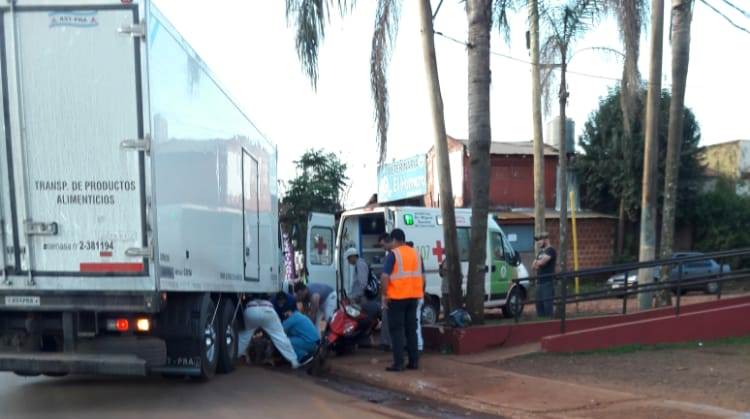 Un segundo accidente se suscitó entre un camión Scannia de gran porte con dominio de la República del Paraguay y una motocicleta de 125 cc.