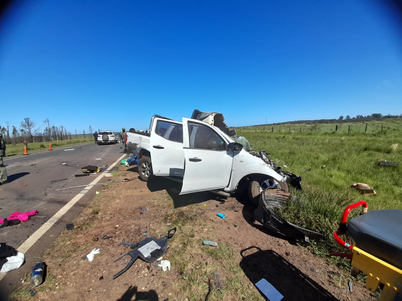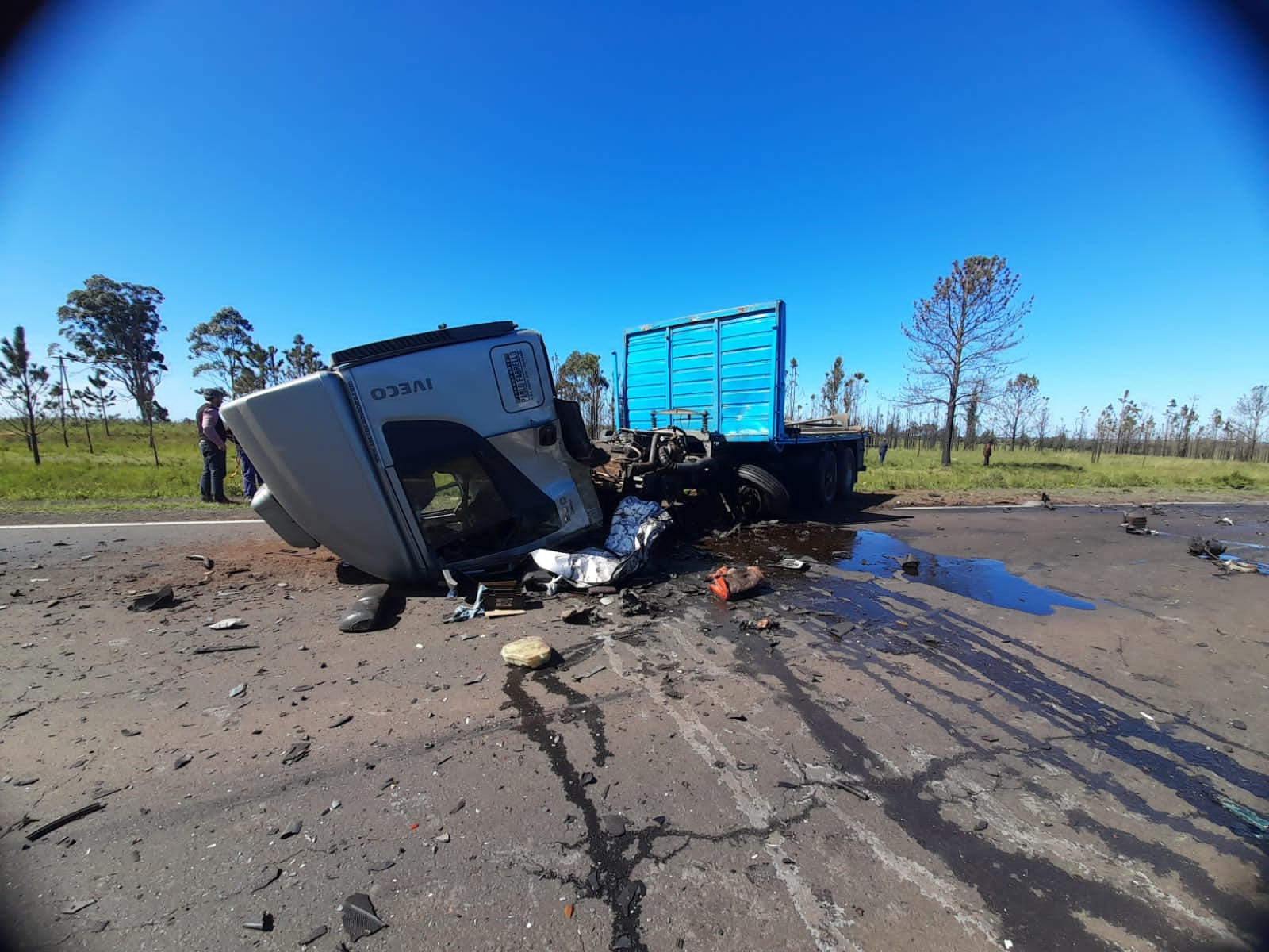 El hecho sucedió en la zona de Ruta 14 en inmediaciones del campo Isidro Bonifacio Cáceres, campos del Ejército Argentino, a unos pocos kilómetros al sur de Santo Tomé. En el lugar colisionaron frontalmente un camión marca IVECO con semirremolque que circulaba vacio y proveniente de Chajarí contra una camioneta NISAN doble cabina y ésta última fue luego embestida desde atrás por una FORD Eco Sport.