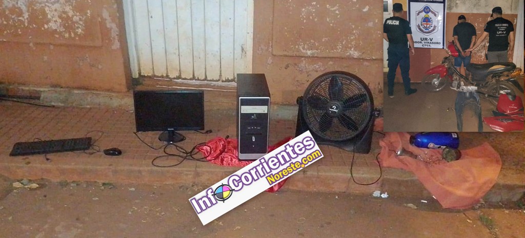 Luego rápidamente se pudo individualizar a una persona de sexo masculino al que en actitud sospechosa trasladaba un ventilador de pié, siendo apresado en el lugar. Asimismo se realizó un amplio rastrillaje por la zona pudiendo dar con otros elementos, entre ellos una computadora de escritorio también sustraída de la citada oficina.