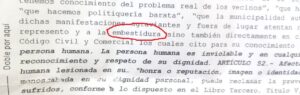En otro tramo dice, “Refiriéndose directamente a la máxima autoridad –intendente- de manera despectiva y agraviante…”, y luego, más adelante expresa, “Dichas manifestaciones agraviantes y fuera de lugar atentan no solo a la institución a la cual represento y a la EMBESTIDURA (así dice)…”.