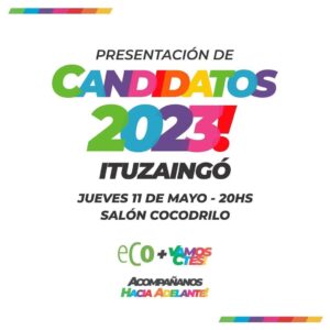 Este Jueves 11 de Mayo a partir de las 20 horas la sita es en el Salón Cocodrilo de Ituzaingó donde se espera una multitud para acompañar a los Candidatos locales y provinciales.