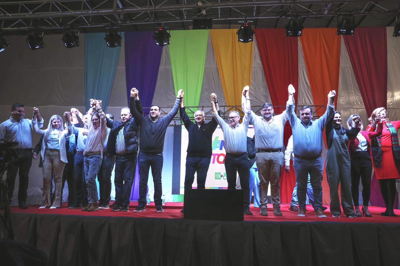 Acto seguido, marcaron su presencia en el escenario los candidatos a concejales titulares: Pedro Kasibrodiuk, Viviana Rodríguez Bonutti, Carlos Farizano (hijo), Marta Soto y Santiago Saucedo. Y luego los que aspiran un lugar en la legislatura correntina, como el candidato a Senador Joselino Fernández Blanco y los que integran la lista para la Cámara de Diputados: Antonio Barros Perkin, Valeria Pavón, Silvia Galarza Y Pedro “Perucho” Cassani.