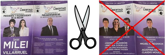 Quienes propician el corte de boleta aconsejan votar solamente la primer parte de la boleta donde figura Milei como candidato a presidente y la segunda de Parlamentarios del Mercosur distrito nacional. En cambio piden no votar por el candidato a diputado nacional por Corrientes, Lisandro Almirón, actual concejal de Corrientes capital por el Kirchnerismo y que como suplente lleva al ex funcionario (o actual) ya que se lo sigue viendo vinculado al municipio de Virasoro, Walter Castillo.