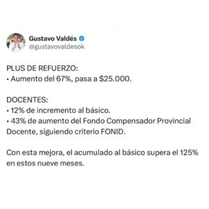 – DOCENTES: 12 % de incremento al básico. 43 % de aumento del Fondo Compensador Provincial Docente, siguiendo criterio FONID.