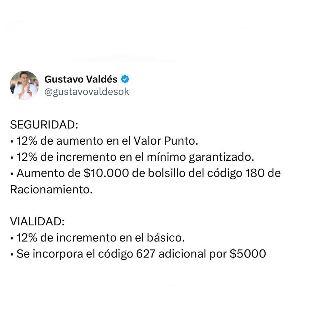 –SEGURIDAD: 12 % de aumento en el Valor Punto. 12 % de incremento en el mínimo garantizado. Aumento de $ 10.000 de bolsillo del código 180 de Racionamiento.