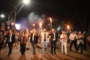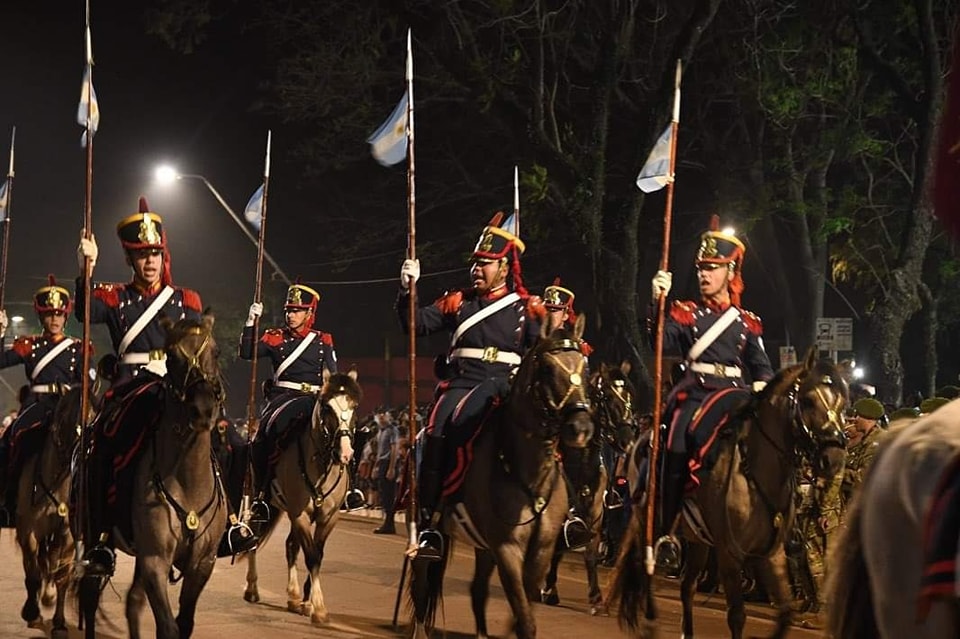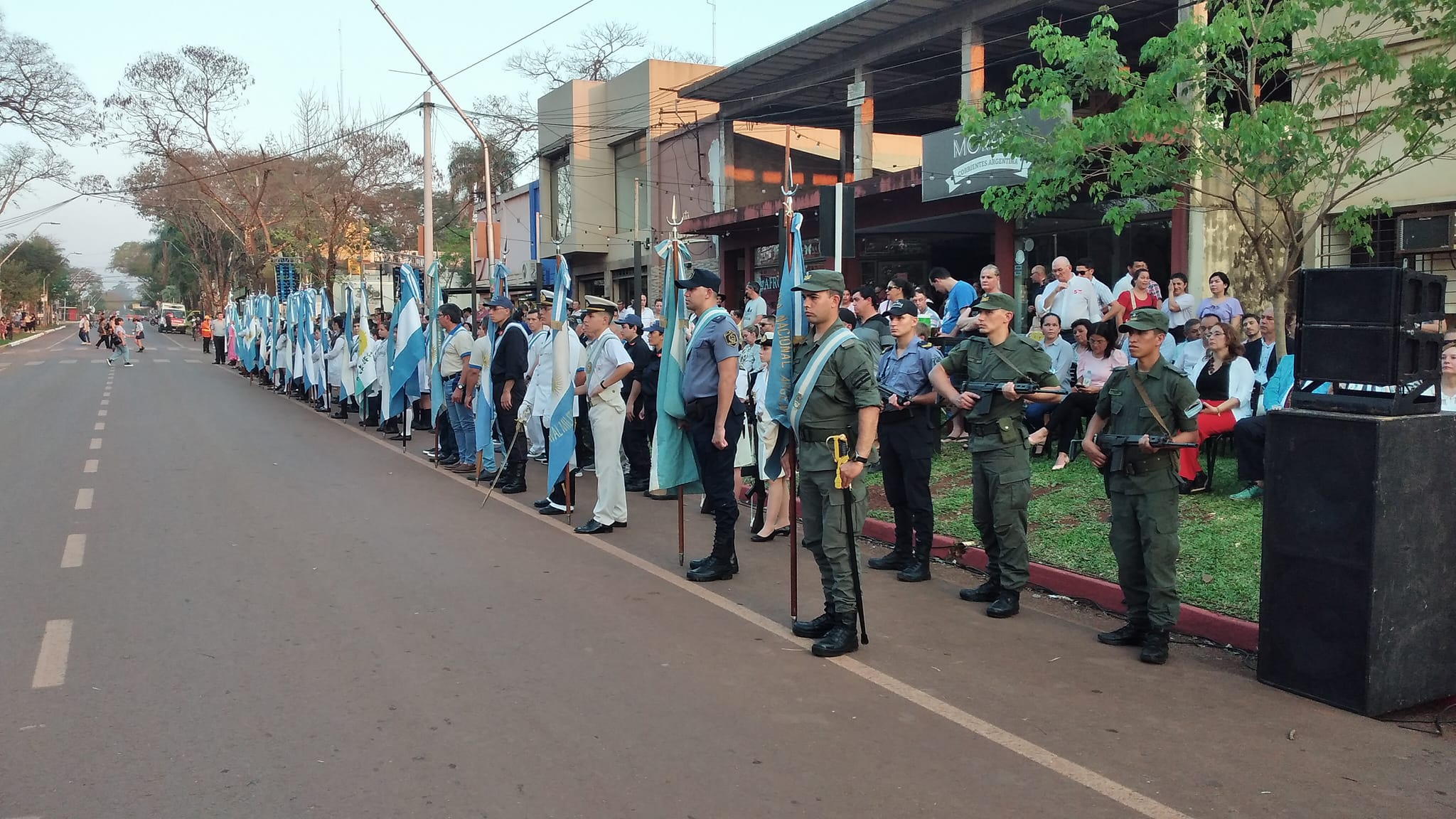 El acto finalizó con desfile de instituciones locales donde por último la comunidad del Colegio Secundario Vélez Sarfield realizó su tradicional desfile de antorchas.